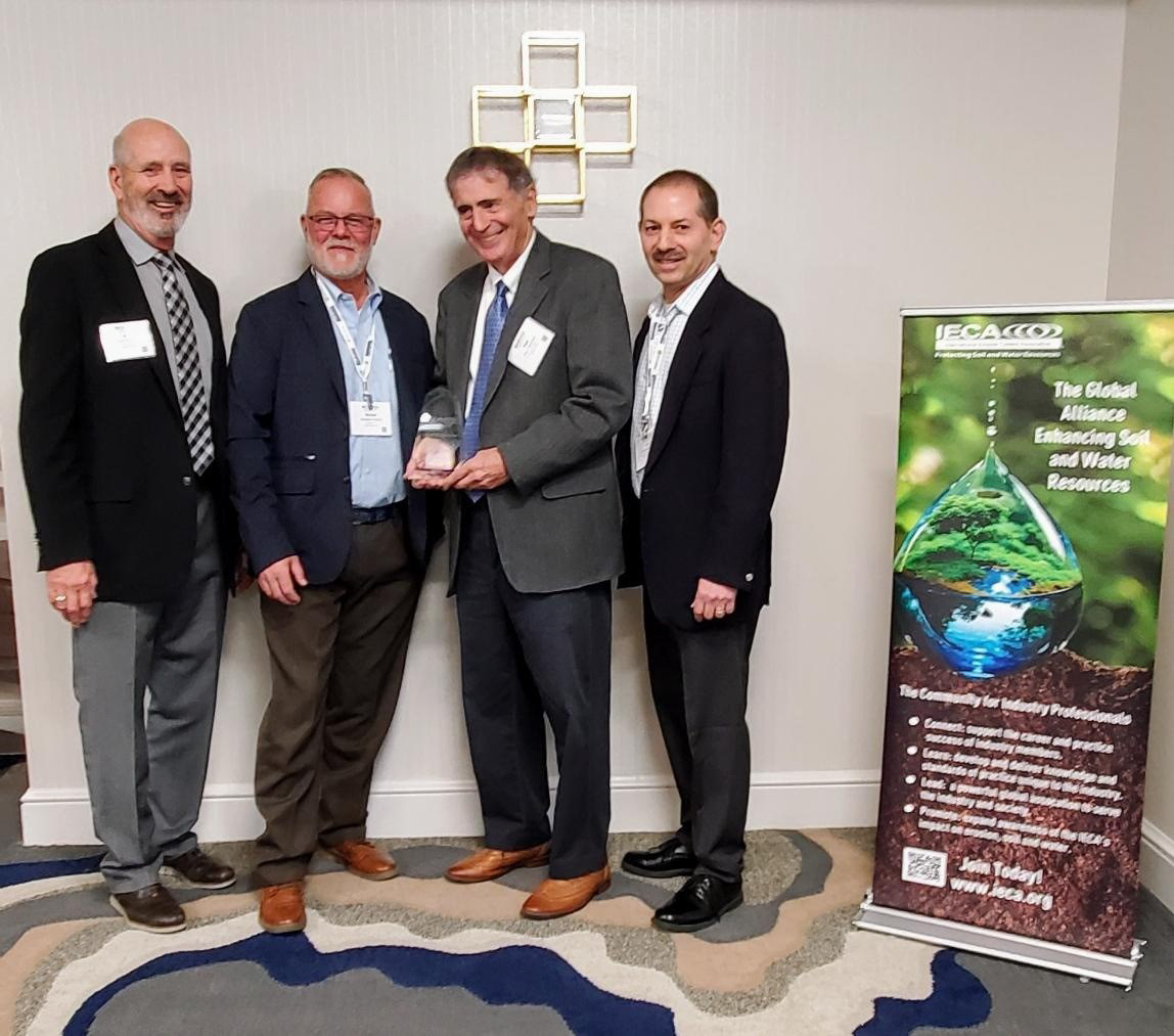 Pictured above: IECA President Jerry Sanders joins Northeast Chapter Board member and NH State Representative Mike Everhart and President Eric Steinhauser in presenting the inaugural Peter Hanrahan award to Pete for his professional contributions to the industry during his career and continued service to the IECA during retirement. Pete presented during the conference about what coastal erosion control in the northeast might look like in 2050.