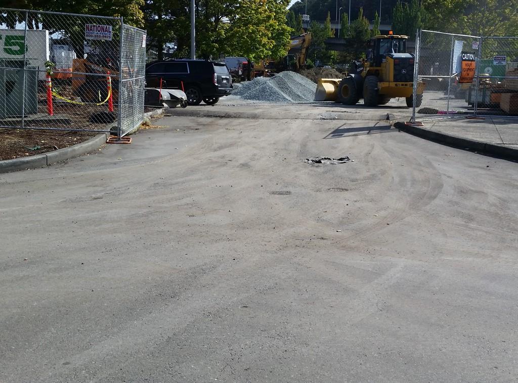 Also, note the Bobcat broom sweeper just inside the fence on the left; these are great for pushing dirt around and up in the air but we only allow vacuum sweepers on projects, so I don’t know why this is on site.